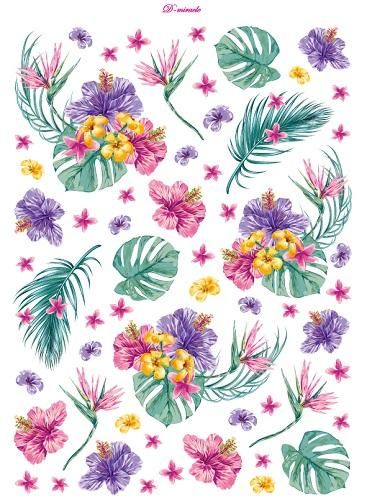 ハイビスカスをメインに夏らしいお花が色鮮やかに散りばめられています。