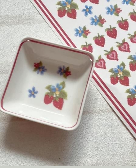 人気のストロベリー柄を織物の様な輪郭にデザインを